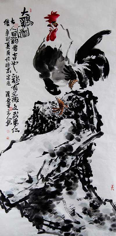 四德仁也:遇食分享,共品美餐。传说,公鸡乃是玉衡星的化身,是阳气的象征。每当捕捉猎物或有食物,决不会独个吞食而不顾后来者。